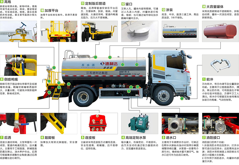 ● 采用專用定制版大功率水泵,具有性能優(yōu)良、工作可靠、效率高、流量大、等特點(diǎn),前沖可達(dá)雙向8車(chē)道,后灑可達(dá)雙向4車(chē)道,高炮最大可達(dá)40米射程。